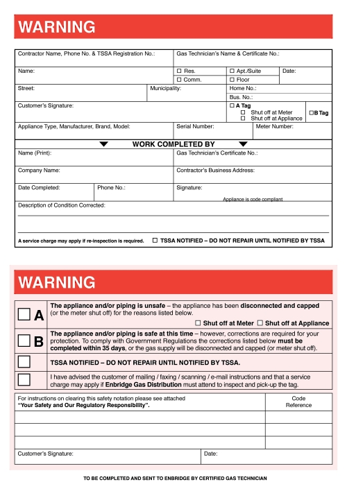 RED-TAGGED GAS FURNACE CLEARANCE HEATER FIREPLACE VENTING. TSSA ENBRIDGE ENERCARE GAS COMPANY MISSISSAUGA OAKVILLE BURLINGTON MILTON ETOBICOKE REDTAG. .